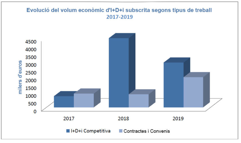 L’any 2019 s’ha aconseguit un volum econòmic d’investigació subscrita per valor de 4.855.000 euros, segons les dades arreplegades en l’informe anual de resultats de les activitats d’R+D+i del Campus.